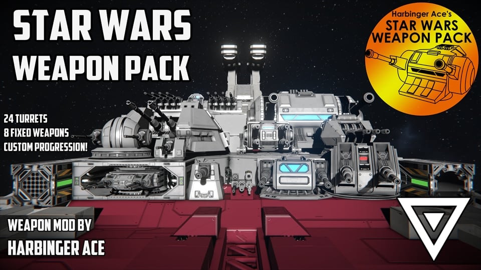 Star Wars Weapon Pack by Harbinger AceArm yourself with six varieties of laser cannons to fend off pesky scoundrels, 14 different turbolaser models to wage all-out war, and three distinct proton torpedo launchers to bring the pain to your foes! Also included is the new Manufactory, a powerful assembler capable of manufacturing nearly all varieties of ammunition and the components to unlock their weapons. |