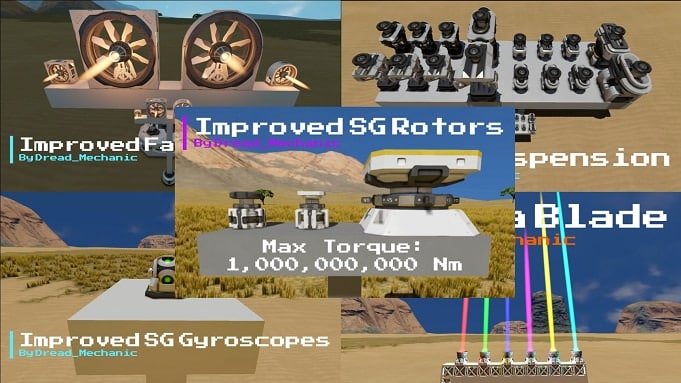 Mech Building Pack by Dread_MechanicThis is a pack of mods designed to make mech building easier. Improved SG Rotors, Gyroscopes, Fan Thrusters, Suspensions, and more! |