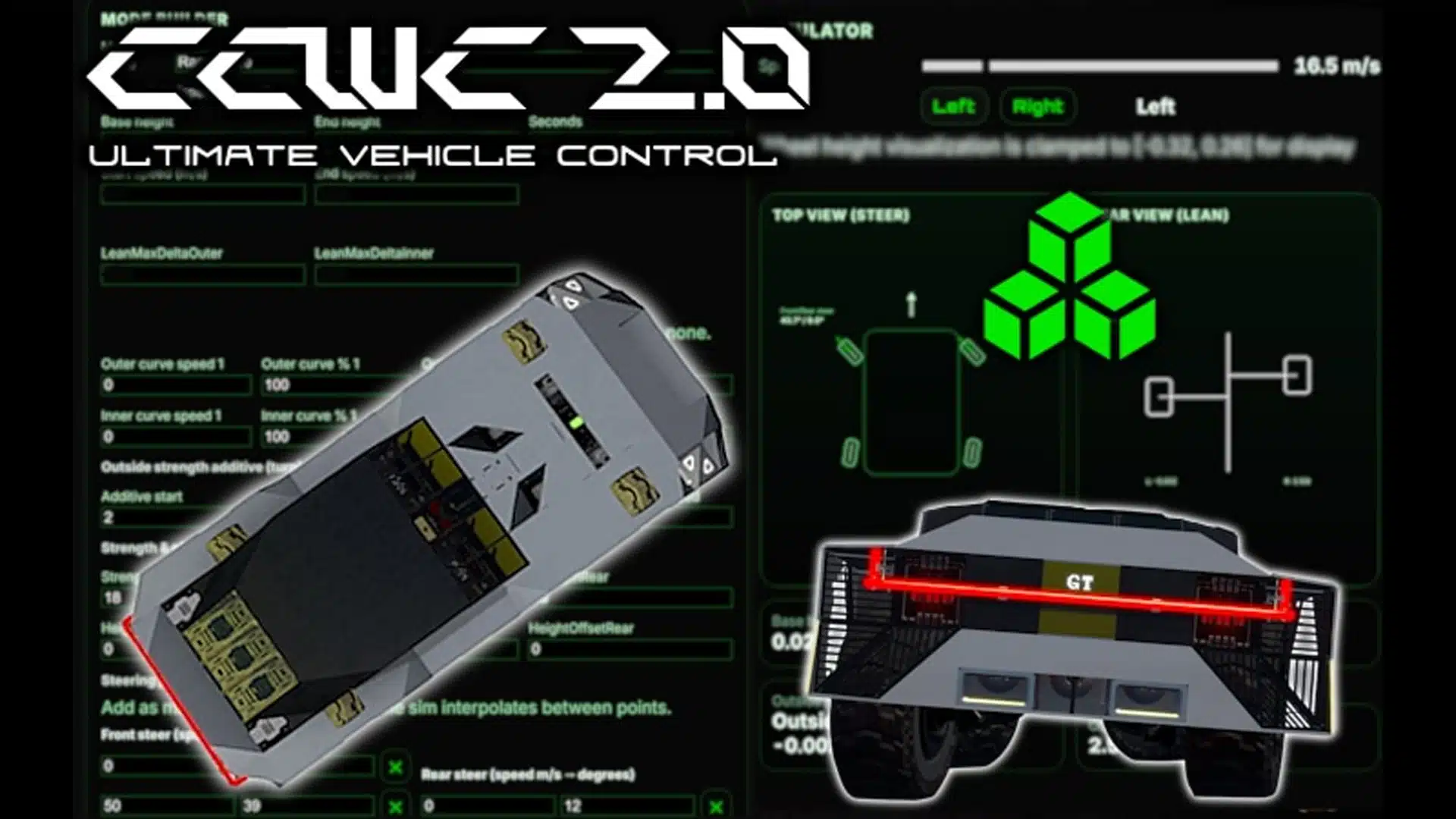 CCWC 2.0 by CHKNFRYRMNCCWC 2.0 is a full vehicle control suite designed for high-performance cars, trucks, off-roaders, and racing rovers, featuring dynamic suspension, traction logic, power control, automation systems, and advanced driving assists all in one programmable block. |