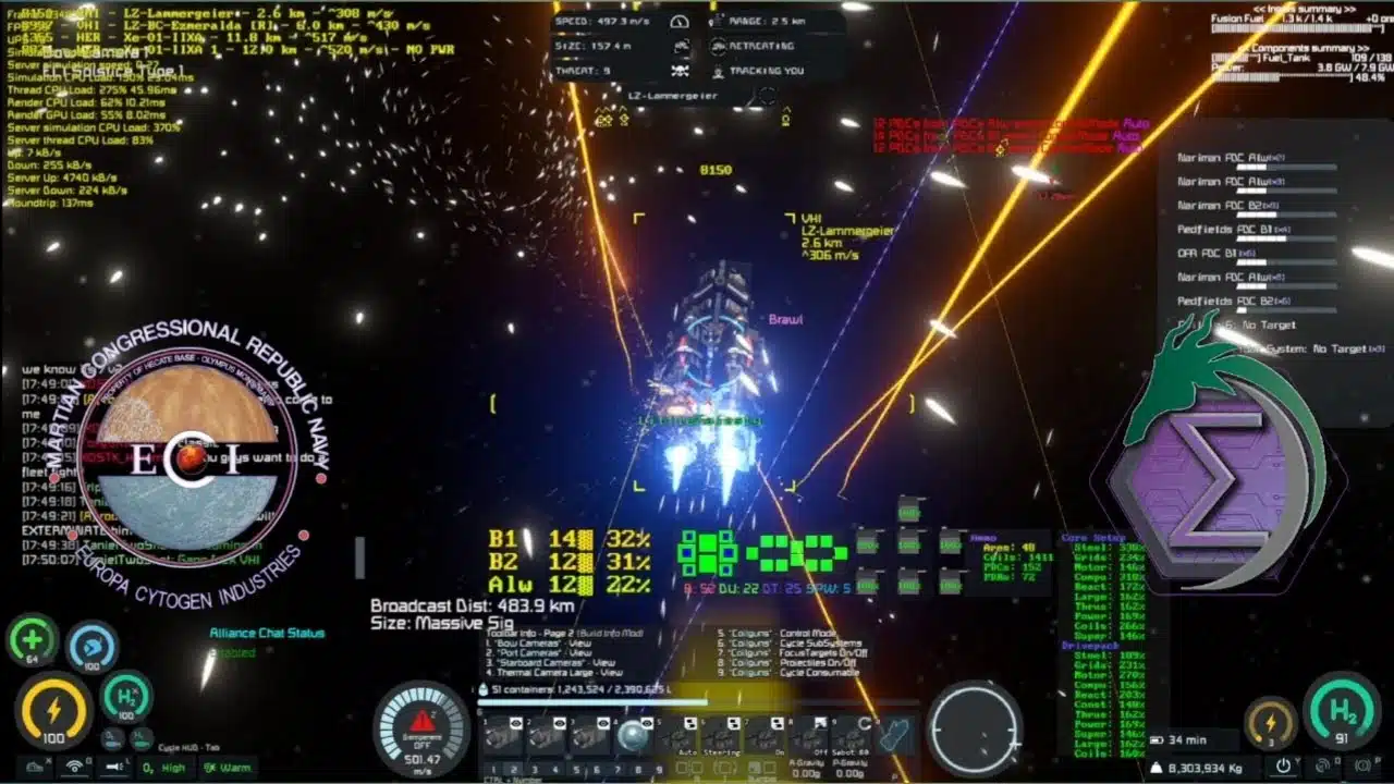 Draconis Expanse (SDX) is very different from vanilla SE – sometimes so much that it is referred to as “its own game” by our playerbase. There is a 500m/s speed limit for large grids, and Epstein Drives (our main thrusters) can only point one way. There are areas of the server where you can go 15km/s, and a massive set of custom blocks modeled after sets seen in the show. There are many players on SDX who have never played Vanilla SE, and are racking up thousands of hours on server through our unique progression system and engaging community, while fighting 24 uniquely built lore-accurate NPCs. SDX truly is a server like no other.”