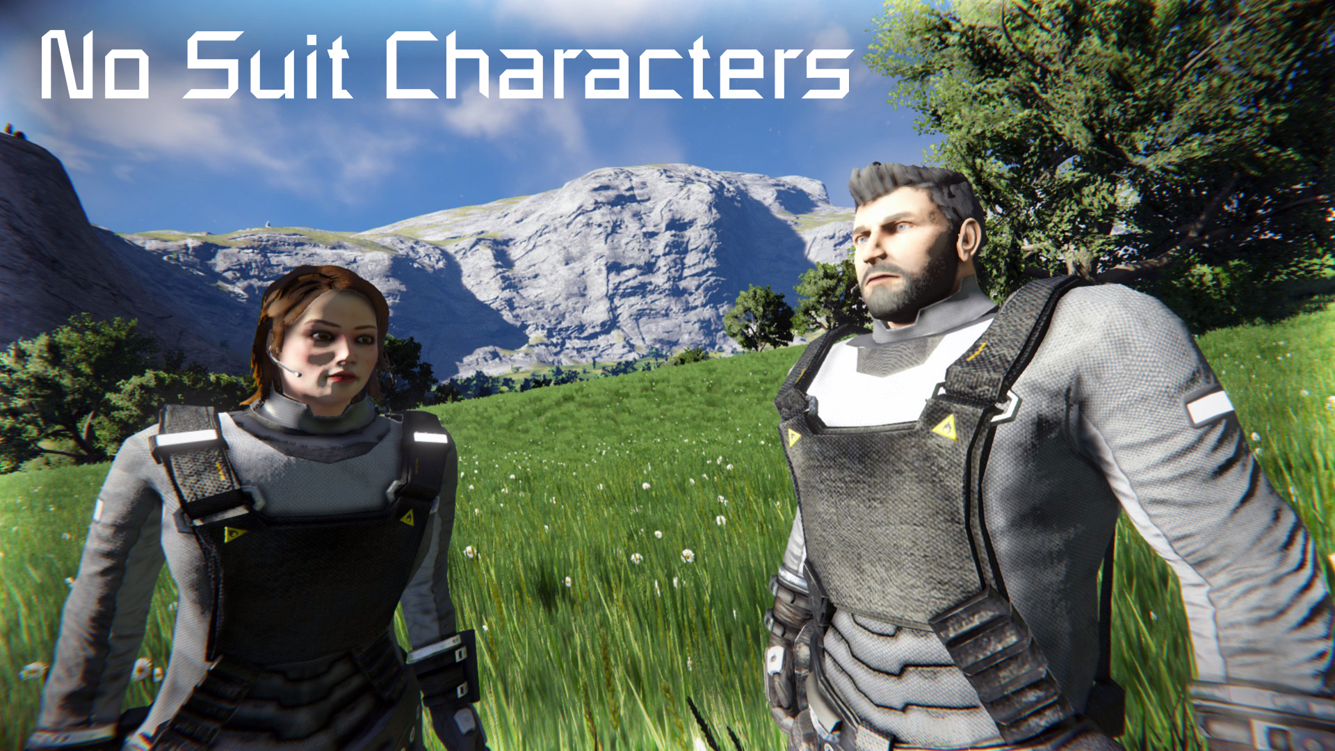 No SuitsThis mod adds 2 additional characters a male and a female without helmets or jetpacks. Simply select the character you want from the medbay! |