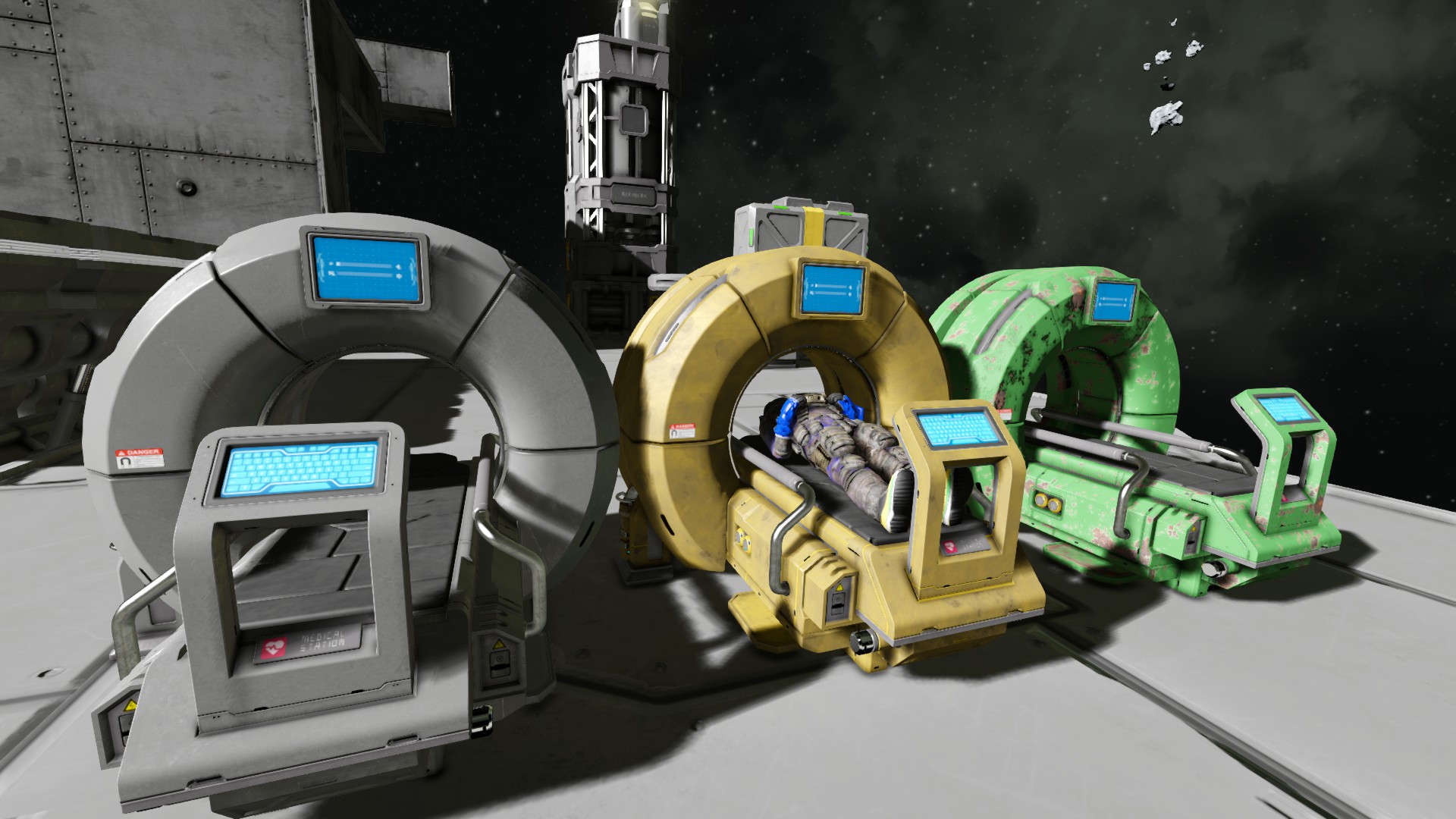 Medical StationDecorative Medical scanner with bed function. Thanks to Stollie now with Healing action and rotating scanner action! Piped up for O2& H2 replenishing, available in large & small grid. |